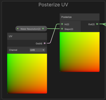 Um den Effekt zu erzeugen, dass unser Wasser aus Voxel (3D-Pixeln oder auch Würfeln) besteht, können wir die Texturkoordinaten vor dem Übergang in die Noise-Muster kacheln. .